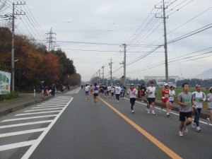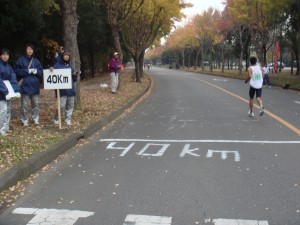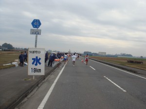 再び大通りに帰ってきた。走る方向のせいか、より走りやすくなってきた。前に目標となる集団もあるので少しずつ追いかける。でもまだ10km以上はあるので35kmくらいまでは我慢だ。大田原のときと同じ。でもあのときより脚の重さはない気がする。
