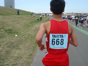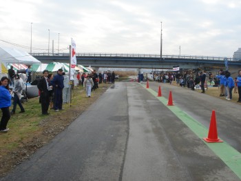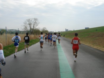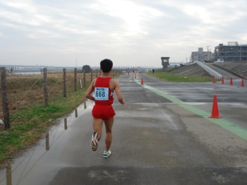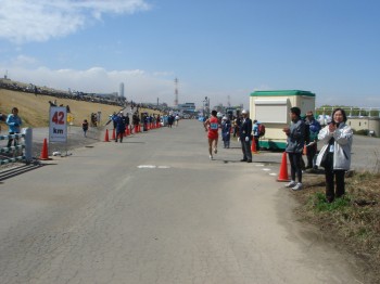 この大会は、荒川河川敷を行って帰ってくるだけの景色は単調でつまらないコース。ということであまり写真を撮るつもりはない。タイムを狙うためにも。