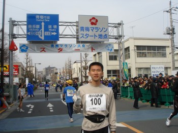 歴史のある「青梅マラソン」は今年で40回目。今年は記念大会ということで18,000人の参加者がいるようだ。スタートの列もものすごい長さ。それでも、タイム順であるゼッケン番号順のスタート位置は一般の一番前のグループだった。そのゼッケン番号は「100」。これほどの若い番号は、周りのランナーを見るとやや荷が重い気がする。そしてこのキリの良い番号。運がいいのか、これで運を使い切ってしまったのか。