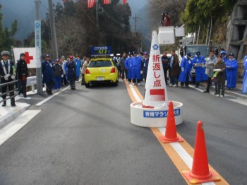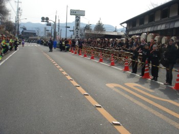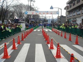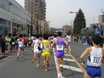再び青梅駅前に帰ってきた。沿道の応援も多くなってくる。今回はこの「いい番号」のおかげで多くのつっこみをいただいた。「100番頑張れ」「いい番号だなぁ」せっかくなので手をあげたり振ったりして応えるのだが、この番号のおかげで、かなり手を上げることになった。そしていつも通りデジカメについてもつっこまれる。「余裕だなぁ」これにも適当に応える。あまりいい番号をもらってしまうのも考え物かもしれない。応援をたくさんもらえてうれしいが、余計に疲れる。
